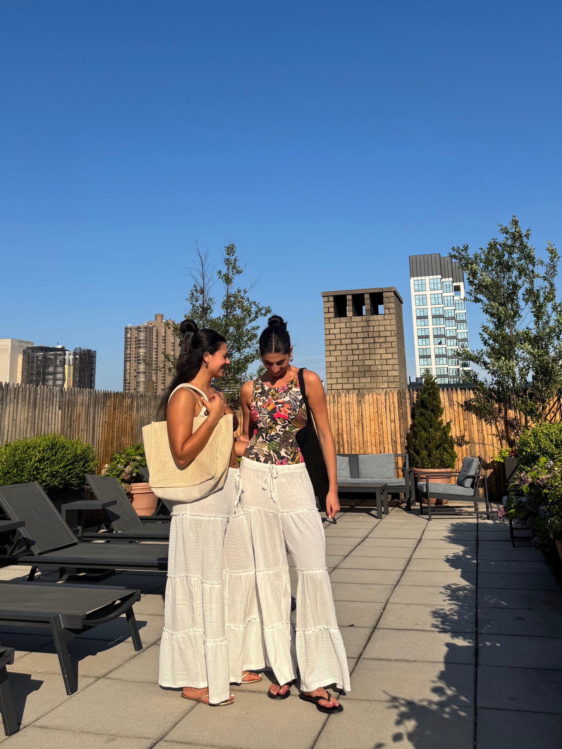 raw edge double gauze wide leg pant.